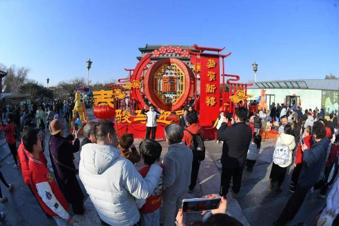 马年装饰吸引游客合影。