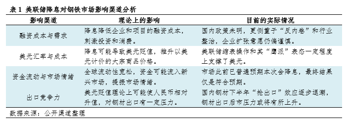 美联储降息主要通过以下几个渠道影响钢铁市场: